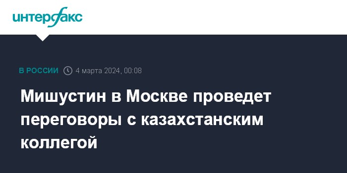 Мишустин в Москве проведет переговоры с казахстанским коллегой