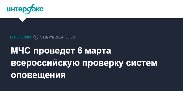 Москва. 5 марта. INTERFAX.RU - Проверка систем оповещения населения пройдет по всей России в среду, сообщает МЧС РФ.