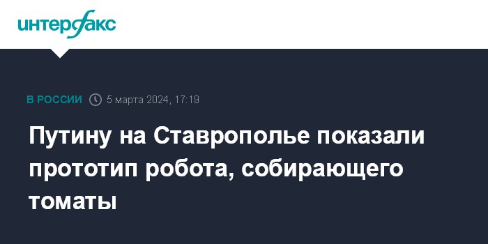 Путину на Ставрополье показали прототип робота, собирающего томаты