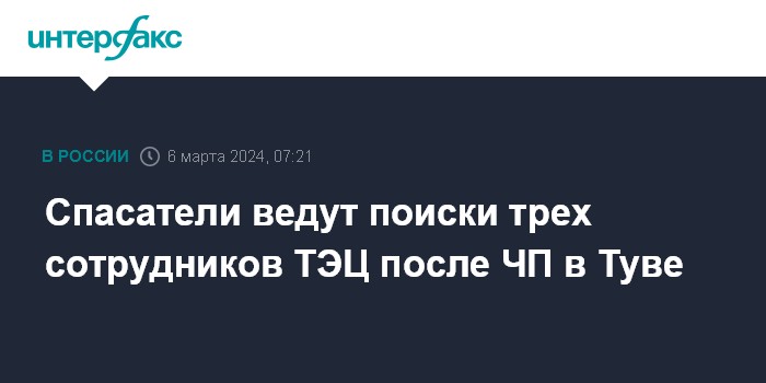 Москва. 6 марта. INTERFAX.RU - Спасатели ведут поиски троих пропавших работников Шагонарской ТЭЦ в Туве после пожара, сообщил глава республики Владислав Ховалыг в своем телеграм-канале.