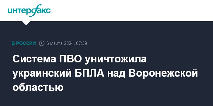 Система ПВО уничтожила украинский БПЛА над Воронежской областью