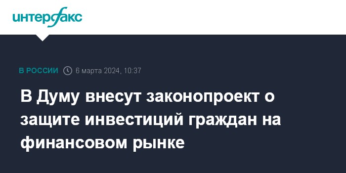 В Думу внесут законопроект о защите инвестиций граждан на финансовом рынке