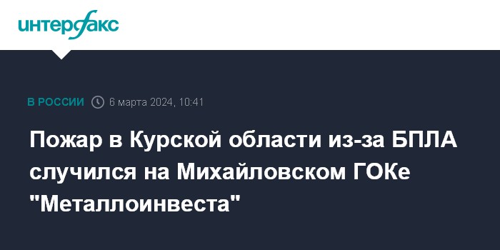 Пожар в Курской области из-за БПЛА случился на Михайловском ГОКе "Металлоинвеста"