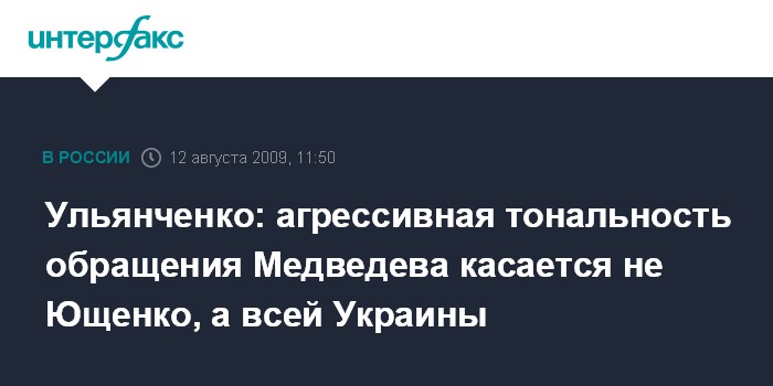Ульянченко: агрессивная тональность обращения Медведева касается не Ющенко, а всей Украины