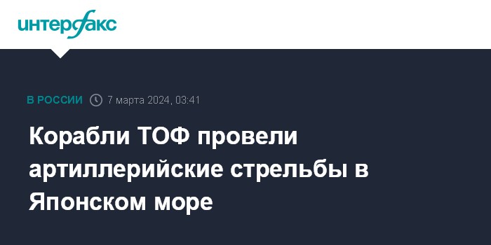 Москва. 7 марта. INTERFAX.RU - Экипажи корветов Тихоокеанского флота (ТОФ) "Громкий" и "Совершенный" выполнили артиллерийские стрельбы в Японском море, сообщила пресс-служба ТОФ.