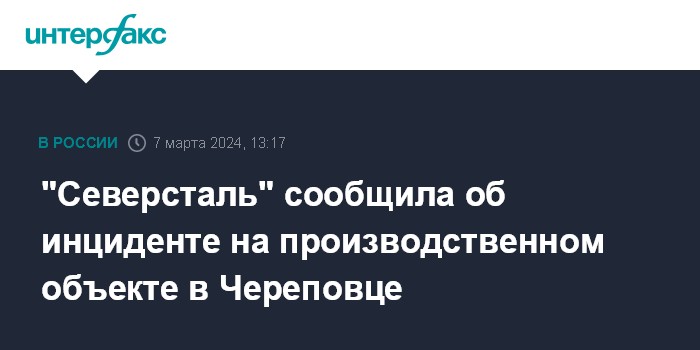 Москва. 7 марта. INTERFAX.RU - Технологический инцидент произошел в четверг утром на производственной площадке "Северстали" в городе Череповец (Вологодская область), сообщил гендиректор дивизиона "Северсталь Российская сталь" Евгений Виноградов.