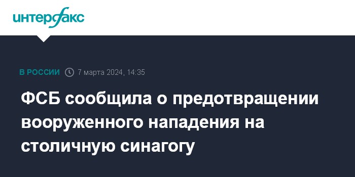 ФСБ сообщила о предотвращении вооруженного нападения на столичную синагогу