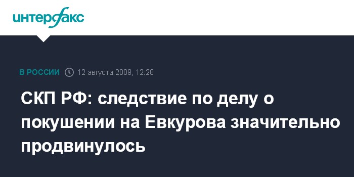 Москва. 12 августа. INTERFAX.RU - В расследовании покушения на президента Ингушетии Юнус-Бека Евкурова достигнут значительный прогресс, сообщил "Интерфаксу" в среду официальный представитель СКП РФ Владимир Маркин. По его словам, на оперативном совещании, которое провел глава СКП РФ Александр Бастрыкин в ходе рабочей поездки по Северному Кавказу, ему было доложено о значительном продвижении по уголовному делу, возбужденному по факту подрыва кортежа президента Ингушетии.