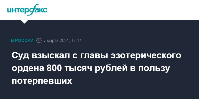 Суд взыскал с главы эзотерического ордена 800 тысяч рублей в пользу потерпевших