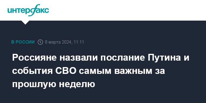Россияне назвали послание Путина и события СВО самым важным за прошлую неделю