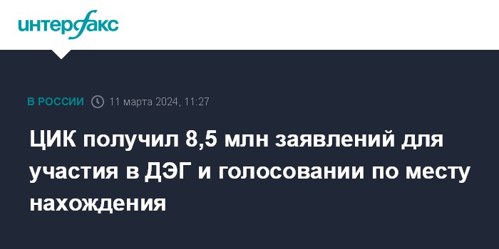 ЦИК получил 8,5 млн заявлений для участия в ДЭГ и голосовании по месту нахождения
