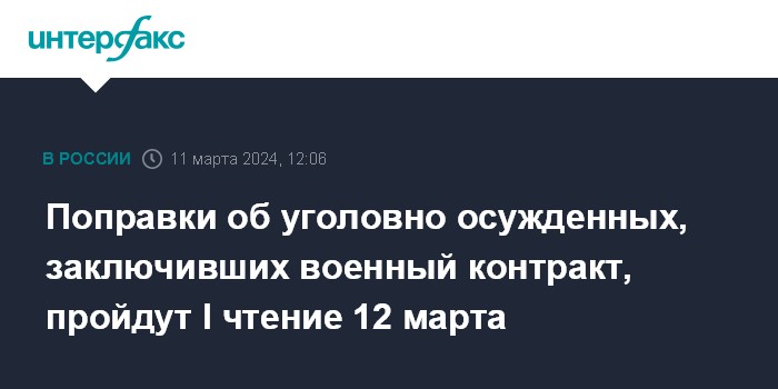 Поправки об уголовно осужденных, заключивших военный контракт, пройдут I чтение 12 марта