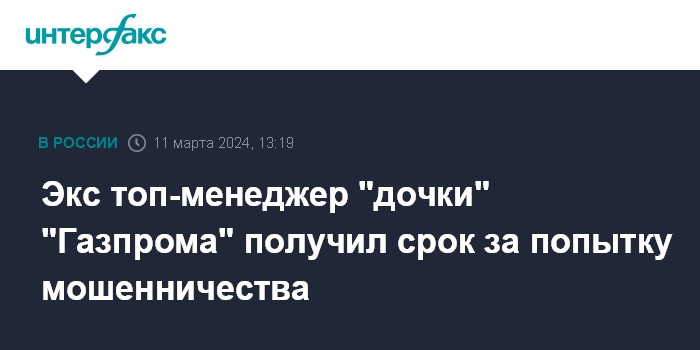 Экс топ-менеджер "дочки" "Газпрома" получил срок за попытку мошенничества