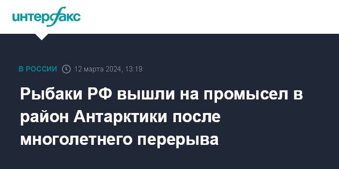 Москва. 12 марта. INTERFAX.RU - Российские рыбаки после многолетнего перерыва вышли на промысел в район Антарктики.