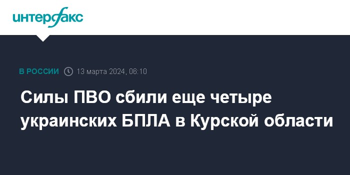 Силы ПВО сбили еще четыре украинских БПЛА в Курской области