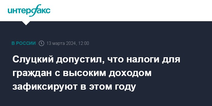 Слуцкий допустил, что налоги для граждан с высоким доходом зафиксируют в этом году