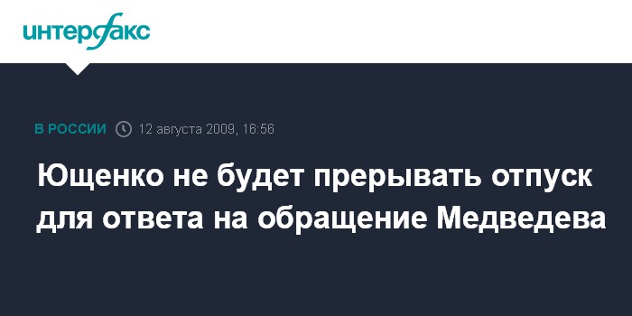 Ющенко не будет прерывать отпуск для ответа на обращение Медведева