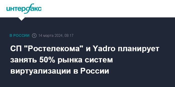 СП "Ростелекома" и Yadro планирует занять 50% рынка систем виртуализации в России