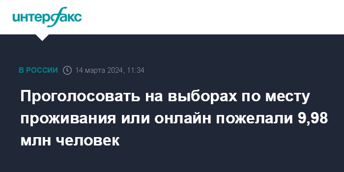 Проголосовать на выборах по месту проживания или онлайн пожелали 9,98 млн человек