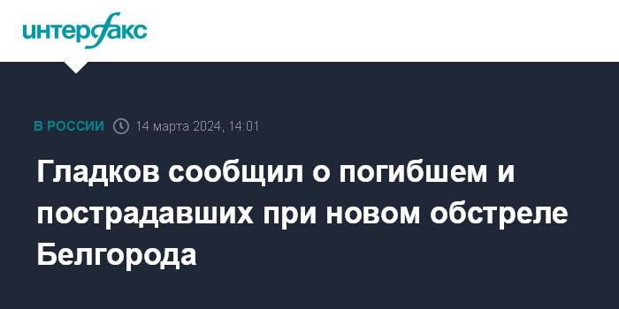 Москва. 14 марта. INTERFAX.RU - Белгород и Белгородский район подверглись повторному обстрелу, над этой территорией ПВО сбила десять воздушных целей, есть погибший и пострадавшие, сообщил губернатор Белгородской области Вячеслав Гладков. Оперативные службы уточняют информацию о последствиях на земле.