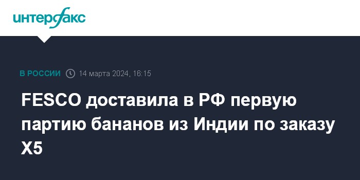 FESCO доставила в РФ первую партию бананов из Индии по заказу X5
