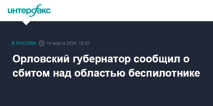 Москва. 14 марта. INTERFAX.RU - Над Орловской областью за день были сбиты два беспилотника, следует из сообщений губернатора региона Андрея Клычкова.