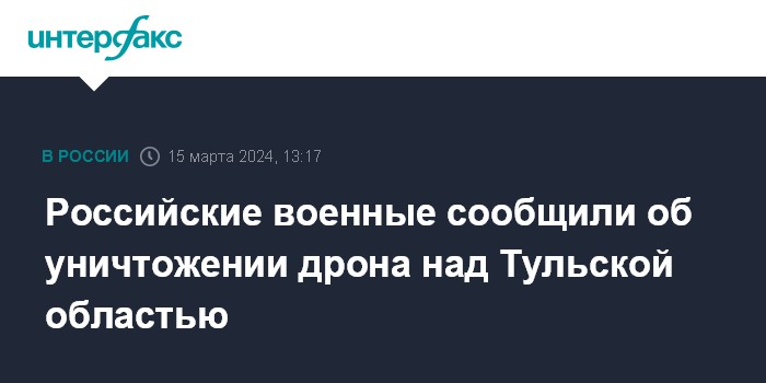 Москва. 15 марта. INTERFAX.RU - Украинский беспилотник нейтрализован в пятницу над территорией Тульской области, сообщило Минобороны РФ.