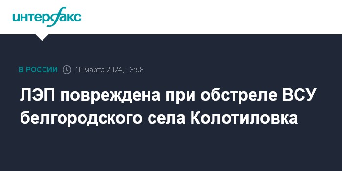 ЛЭП повреждена при обстреле ВСУ белгородского села Колотиловка
