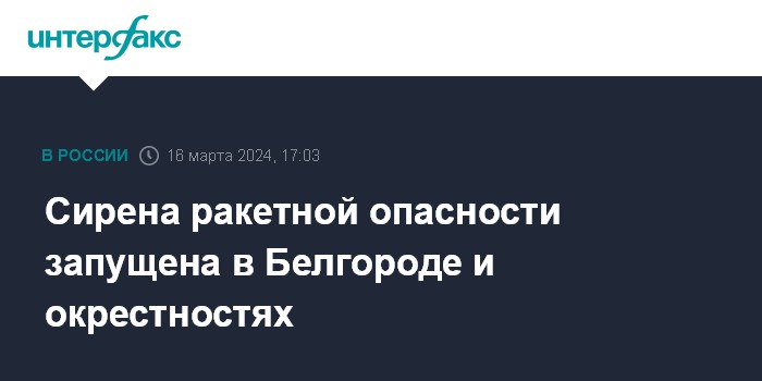 Москва. 16 марта. INTERFAX.RU - Губернатор Белгородской области Вячеслав Гладков сообщил о запущенной сирене ракетной опасности в Белгороде и Белгородском районе.