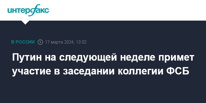 Путин на следующей неделе примет участие в заседании коллегии ФСБ