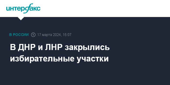 Москва. 17 марта. INTERFAX.RU - Избирательные участки в Донецкой народной республике закрылись, голосование на выборах президента РФ в регионе прошло без нарушений, сообщили "Интерфаксу" в воскресенье в пресс-службе регионального избиркома.