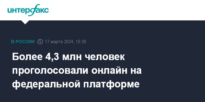 Более 4,3 млн человек проголосовали онлайн на федеральной платформе