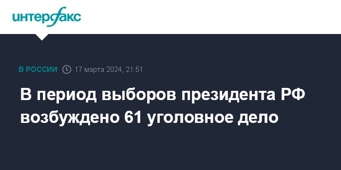 В период выборов президента РФ возбуждено 61 уголовное дело