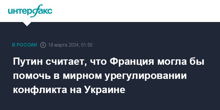 Москва. 18 марта. INTERFAX.RU - Очень хотелось бы, чтобы роль Франции была не в усугублении конфликта на Украине, а в поиске мирных путей, заявил президент РФ Владимир Путин.