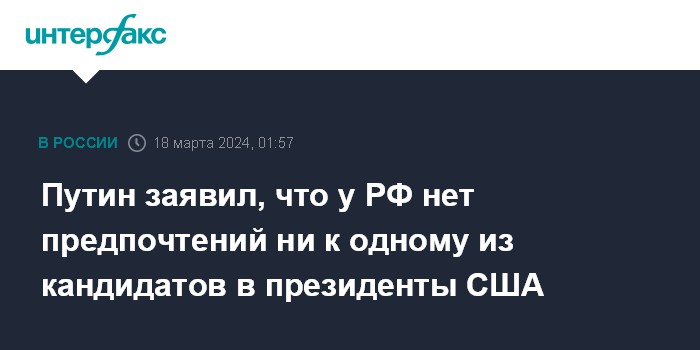 Путин заявил, что у РФ нет предпочтений ни к одному из кандидатов в президенты США