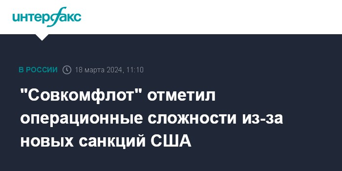 Москва. 18 марта. INTERFAX.RU - Включение "Совкомфлота" в SDN List США создает операционные сложности, компания работает над их преодолением, сообщается в отчете "Совкомфлота".