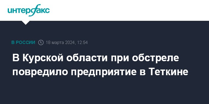 В Курской области при обстреле повредило предприятие в Теткине