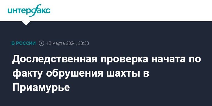 "На территории золотодобывающего прииска в Зейском муниципальном округе 18 марта произошло обрушение шахты. По предварительной информации, несколько рабочих оказались под завалом. По данному факту следственным отделом по городу Зея следственного управления СК РФ по Амурской области организовано проведение доследственной проверки", - говорится в сообщении.