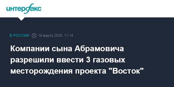Компании сына Абрамовича разрешили ввести 3 газовых месторождения проекта "Восток"