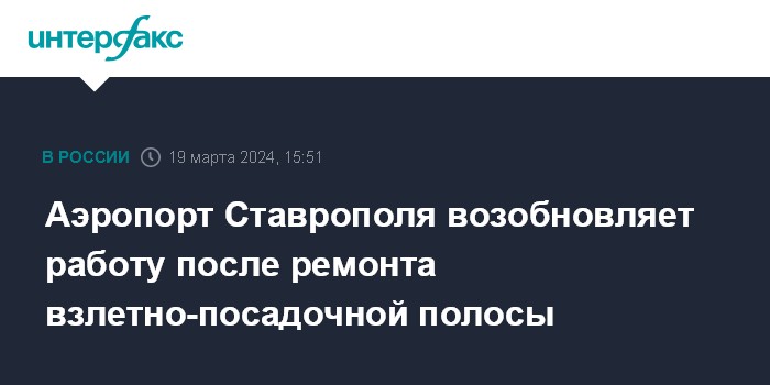 Аэропорт Ставрополя возобновляет работу после ремонта взлетно-посадочной полосы