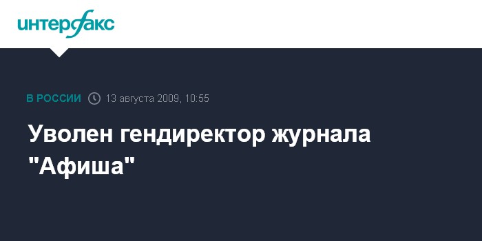 Москва. 13 августа. INTERFAX.RU - Гендиректор журнала "Афиша" Илья Осколков-Ценципер уволен со своей должности. Эту информацию в четверг "Интерфаксу" подтвердили в самом издании. Вместе с тем, в компании "ПрофМедиа", куда входит "Афиша", эту информацию никак не комментируют. "Ничего по этому поводу раньше, чем состоится заседание Совета директоров журнала, а он назначен на 24 августа, мы сказать не можем", - сказали "Интерфаксу" в пресс-службе "ПрофМедиа".