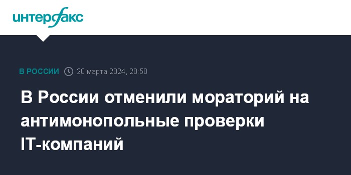 В России отменили мораторий на антимонопольные проверки IT-компаний