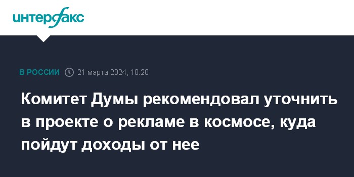 Комитет Думы рекомендовал уточнить в проекте о рекламе в космосе, куда пойдут доходы от нее