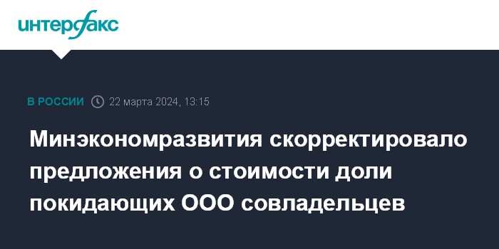 Минэкономразвития скорректировало предложения о стоимости доли покидающих ООО совладельцев