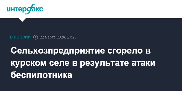 Сельхозпредприятие сгорело в курском селе в результате атаки беспилотника