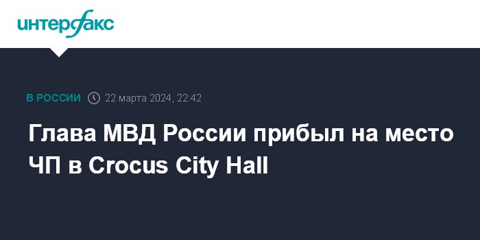 Москва. 22 марта. INTERFAX.RU - Глава МВД РФ Владимир Колокольцев прибыл на место теракта со стрельбой в комплексе Crocus City Hall, сообщила представитель министерства Ирина Волк.