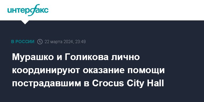 Мурашко и Голикова лично координируют оказание помощи пострадавшим в Crocus City Hall