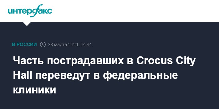 Часть пострадавших в Crocus City Hall переведут в федеральные клиники