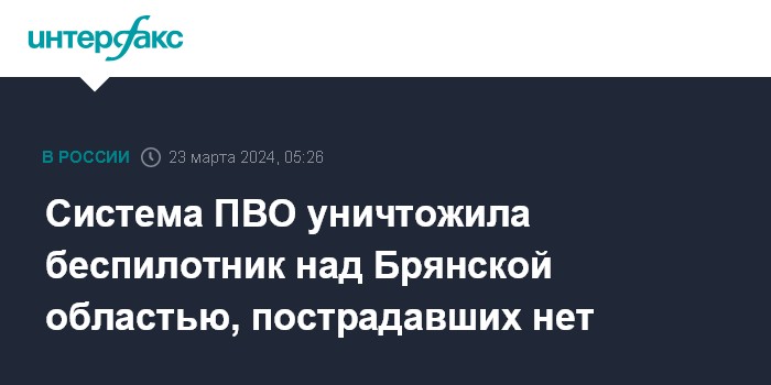 Система ПВО уничтожила беспилотник над Брянской областью, пострадавших нет