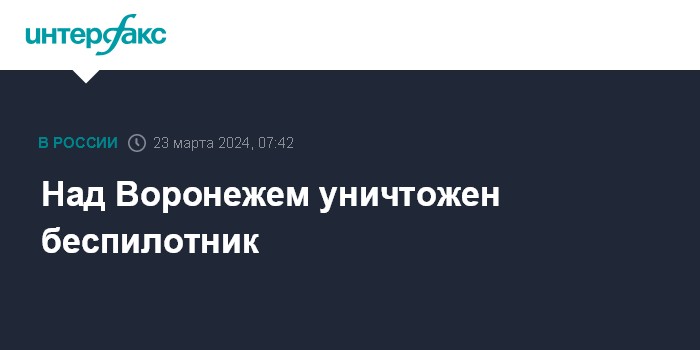 Москва. 23 марта. INTERFAX.RU - Губернатор Воронежской области Александр Гусев сообщил, что утром в субботу над регионом силы ПВО уничтожили украинский дрон над столицей региона.